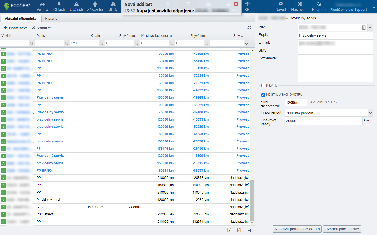 Nechajte si pripomínať dôležité udalosti. Systém za vás postráži pravidelnú technickú kontrolu,